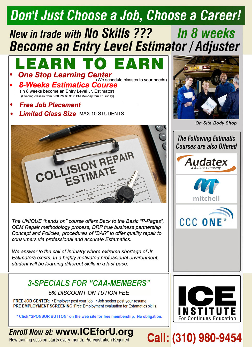 The UNIQUE “hands on” course offers Back to the Basic “P-Pages”, OEM Repair methodology process, DRP true business partnership Concept and Policies, procedures of “BAR” to offer quality repair to consumers via professional and accurate Estamatics.